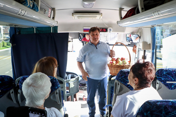 С утра Юрий Николаевич приехал проводить участников экскурсии в Прохоровку – не только с добрыми напутствиями, но и с угощением – местными яблоками. Председатель Думы поздравил земляков с праздником Преображения Господня: «Желаю, чтобы день у вас получился хорошим, радостным. Сегодня мы все живём в напряжении. Но важно понимать, что светлый праздник и общение друг с другом – верный способ пережить трудные времена».